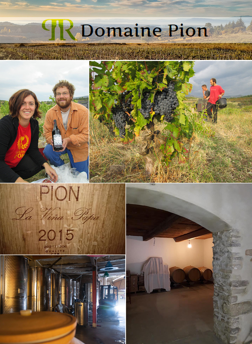 当主のロマン・ピオンは言います、『私たちは家族や近所の友人たちと一緒に、私たちが造ったワインを毎日のようにガブ飲みしています。翌朝はとても元気に畑に出て、帰ってきたらまた美味しく楽しくガブ飲みしています。誰が、農薬や添加物を入れようと思うでしょうか(笑)。』
