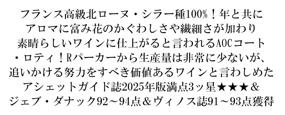 フランス高級北ローヌ辛口フルボディ赤ワイン愛好家大注目!最も上質なシラー種100%で造られる高級辛口赤ワイン!