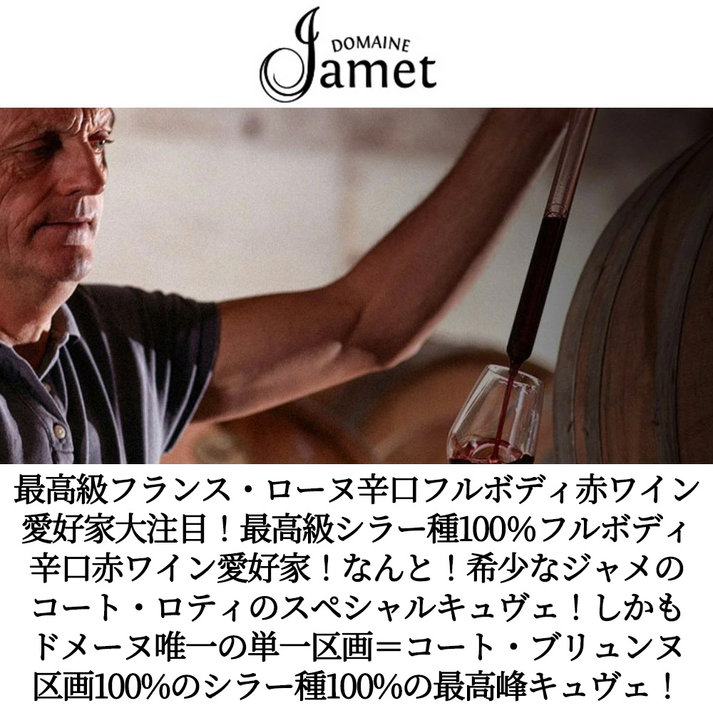 なんと!希少なジャメのコート・ロティ!しかもドメーヌ唯一の単一区画=コート・ブリュンヌ区画100%のシラー種100%の最高峰キュヴェ!