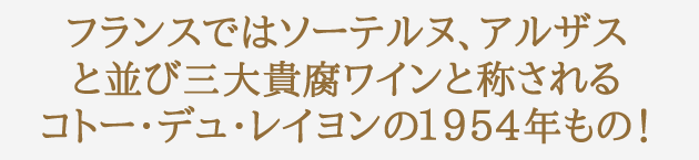 コトー・デュレイヨン、サヴニエール、アンジューに計30haの畑を所有し、2012年にビオロジー栽培に転換しています。ご紹介する古酒は、前オーナーのマルク・モルガが造り、貯蔵していたプライベートストックです。 「尋ねられなければこちらからは案内しない」秘宝で(尋ねてよかった~)、数がかなり少ないため、いつまでご案内できるかは不明です…。ぜひこの機会にご検討くださいませ。 コトー・デュ・レイヨン 1954年 シャトー・デュ・ブルイユ ボーリュー・シュル・レイヨン村のシスト土壌自社畑からシュナン・ブラン100%を収量25~30hlの低収量。長期熟成を目指すためステンレスタンクで醸造&7ヶ月熟成!残糖は50~60g/L!60年以上カーヴで大切に熟成し、素晴しいものだけをリリースするというこだわり!