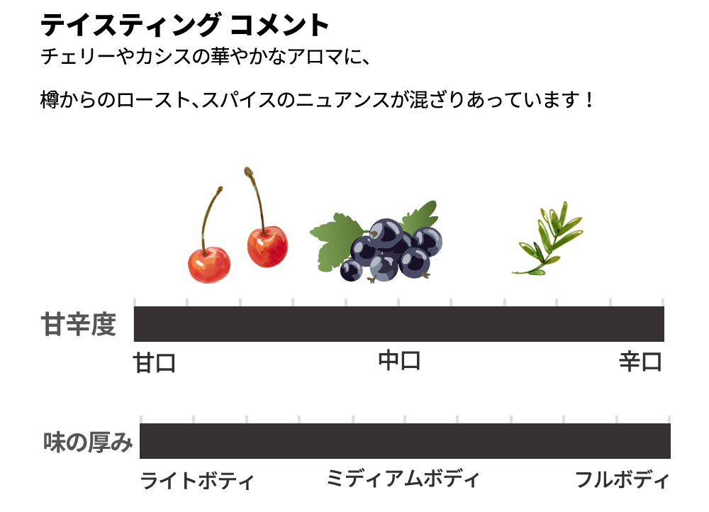 ■発酵・熟成:10~15日間発酵/フレンチオークのバリック(5~10%新樽)で10~12ヶ月熟成