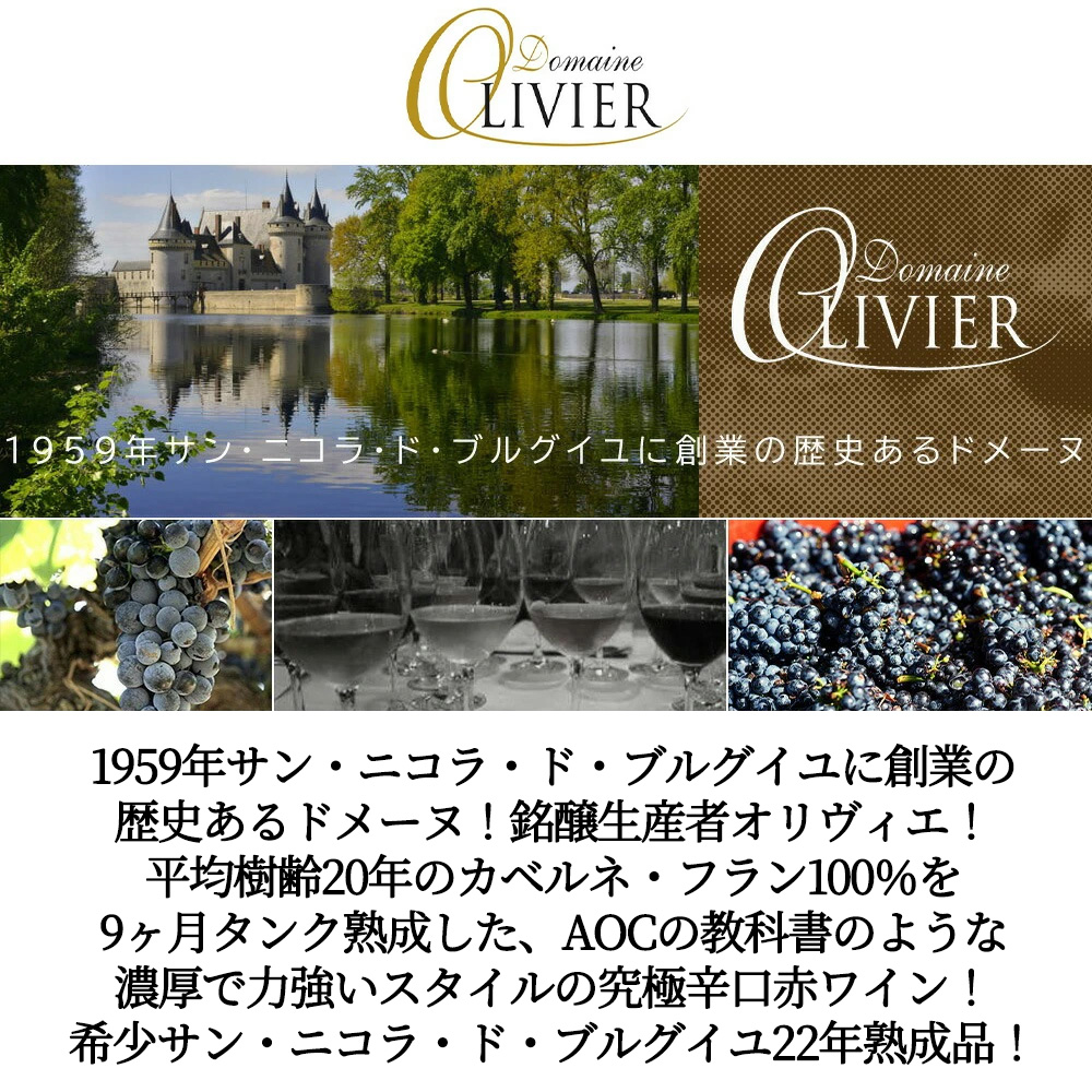 9ヶ月のタンク熟成を経て、バランスの取れた味わいに仕上がっている。濃厚な果実味とタンニンのバランスが取れており、長期熟成に耐える構造を持っている。ロワール地方のカベルネ・フランの特徴である、たくましいフレーバーと力強さを十分に表現したワインだ。熟成により、若いときの荒々しさが落ち着き、エレガントさと複雑さを獲得している。