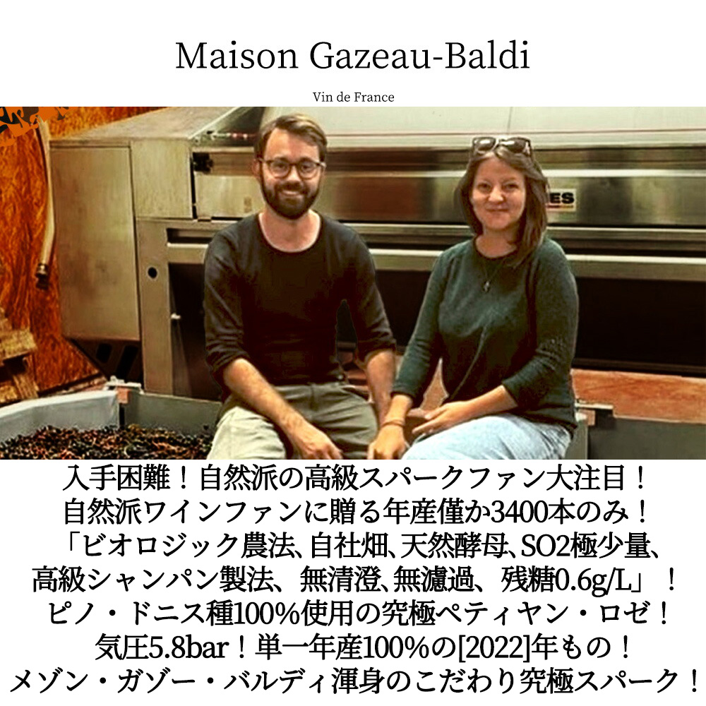 ノン・フィルター、ノン・コラージュ!自然派ワインファンに贈る年産僅か3400本のみのガゾー・バルディ渾身の究極辛口ロゼ・スパークリングワインが限定で少量入荷!