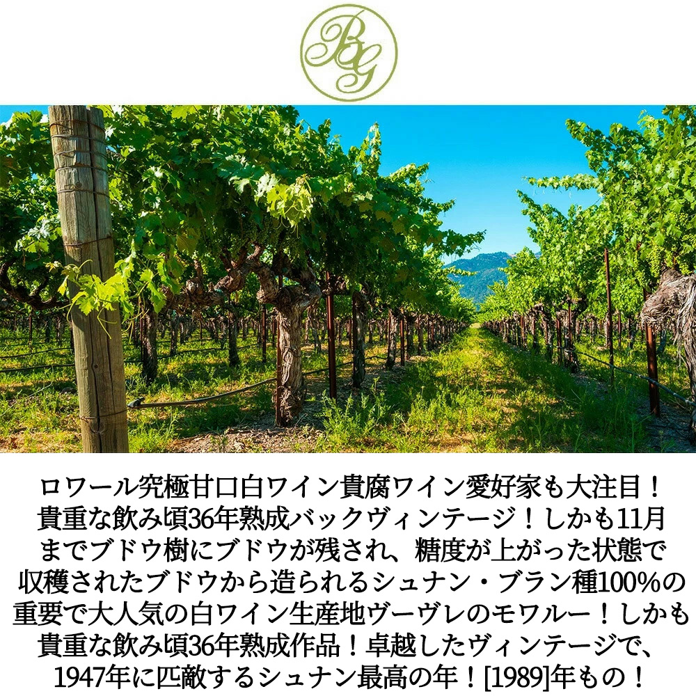 しかも満点★★★★★5つ星年!MWのマイケル・ブロードベント氏も 「満点★★★★★5つ星年!中甘口から甘口の白にとっては卓越したヴィンテージで、1947年に匹敵するシュナン最高の年!」と絶賛!さらにアシェット・ガイド誌2025年でもロワールの甘口白に過去最高の一つ、19/20点の満点を付けるスーパーグレイトヴィンテージの[1989]年もの!