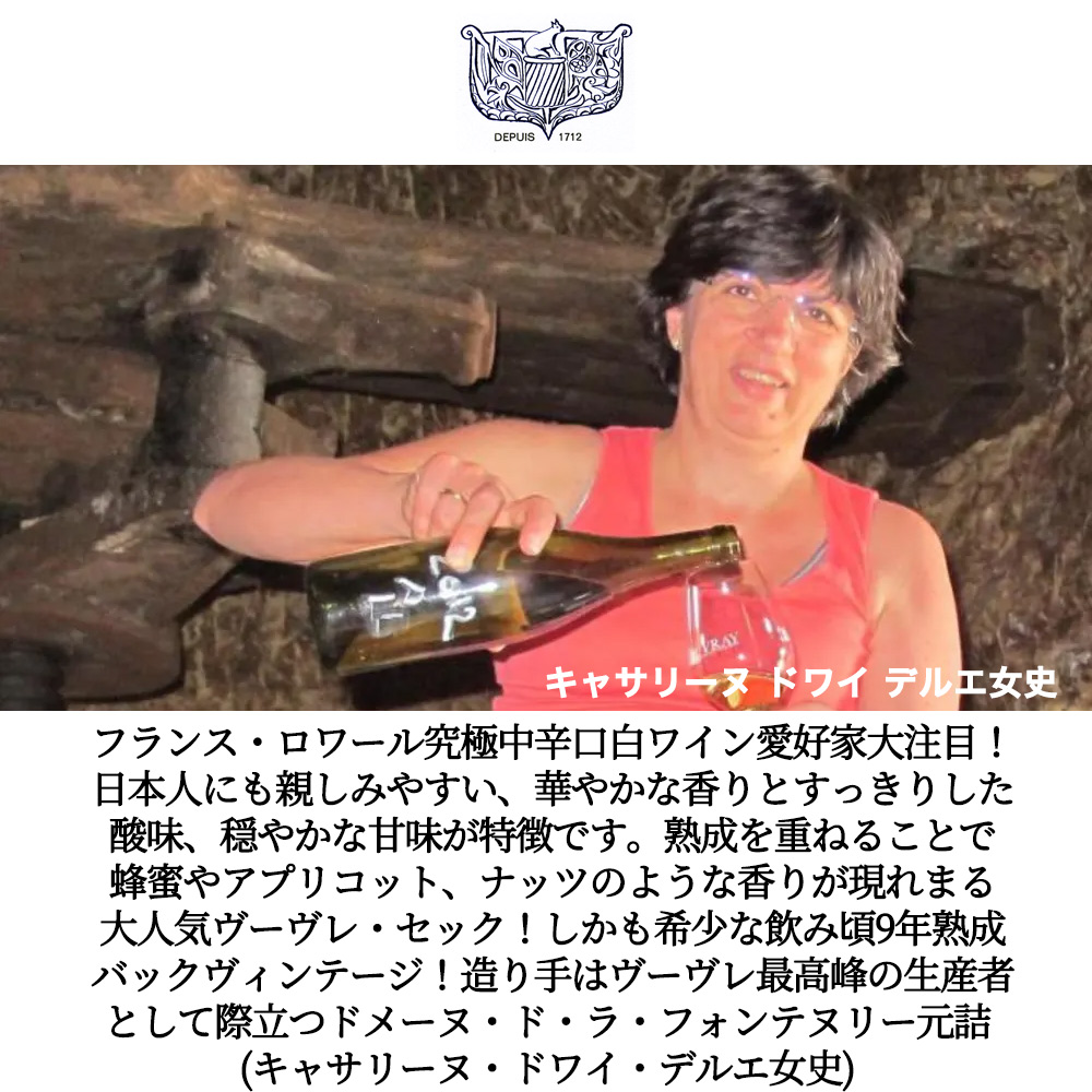 熟成感とミネラル感にシュナン・ブラン種100%のシャプタリゼーションなしの完熟した自然な甘味と酸のバランス!の究極ヴーヴレ・ドゥミ・セックが現地のセラー数ヶ月前の蔵出し作品で少量入荷!