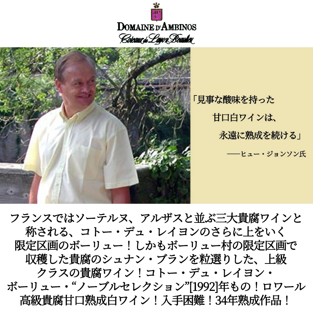 彼のこのコトー・デュ・レイヨン・ボーリュー・“ノーブルセレクション”は、EU各国、北欧諸国、アメリカ、カナダ等々、とりわけ欧米市場で高い評価を受けています。しかも市場では非常に少なくなってきている[1992]年もの!の34年熟成コトー・デュ・レイヨン・ボーリュー・“ノーブルセレクション”のオールドが、限定で少量入荷!