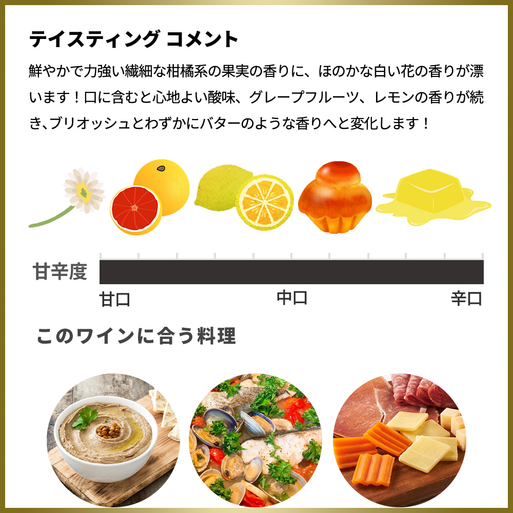 食前酒として、また、おつまみでフムス (中東生まれのひよこ豆ペースト) とご一緒に!魚介 (シーフード) ・カレーやチーズプレート(コンテ、ミモレット)等とよく合います!
