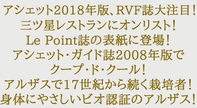 誠実な仕事と持ち前のセンスによって、ワインメディアや高名なレストランのソムリエ達からも高い評価を受けるようになった彼は、ふと立ち止まり、考えたのだそうです。「昔ながらの懐かしいアルザスワインを、今に復活させてみたい」。