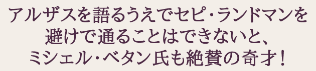 ミッシェル・ベタンをして「アルザスを語る上で、セピ・ランドマンを避けて通ることはできない」と言わしめる奇才が所蔵するバックヴィンテージを、満を持してご紹介します。