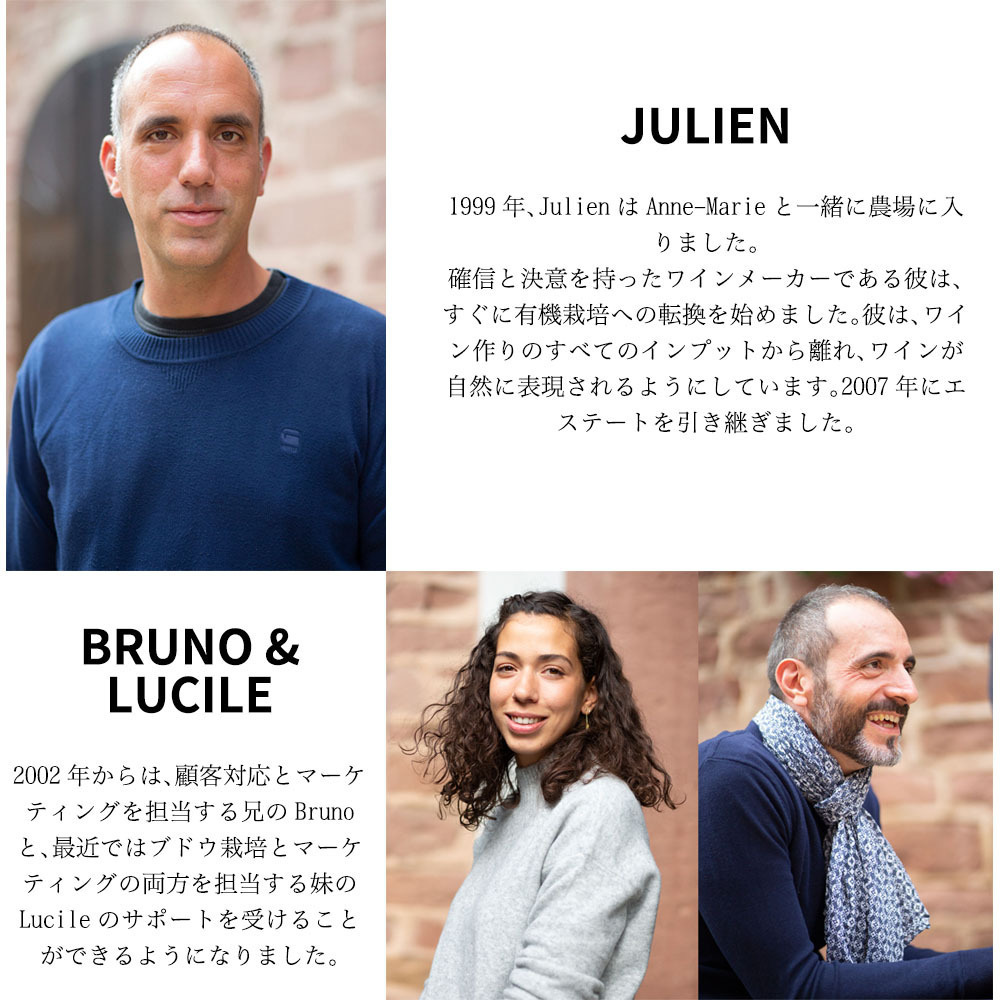 ゴーミヨ誌には「繊細な彼らのワインは(アルザスワインの)真実を語っている。極めてデリケートで、力強いというよりも華やか。主張を押し付けるのではなく、それとなくほのめかすようである」と大絶賛!