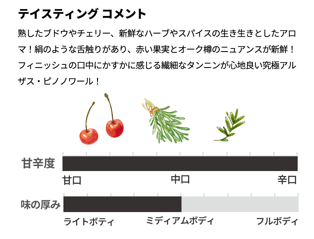 フィニッシュの口中にかすかに感じる繊細なタンニンが心地良い究極アルザス・ピノノワール!