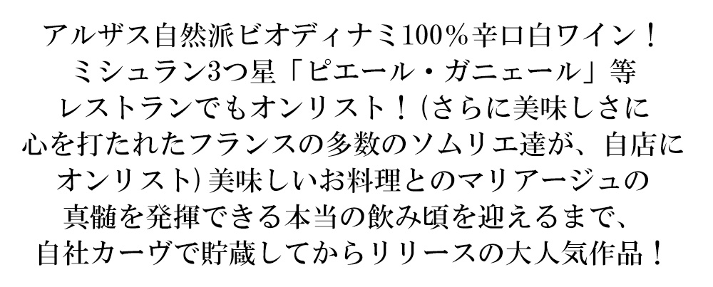 レストラン様からのリピーター多数!アルザス自然派ビオディナミ100%辛口白ワイン愛好家大注目!