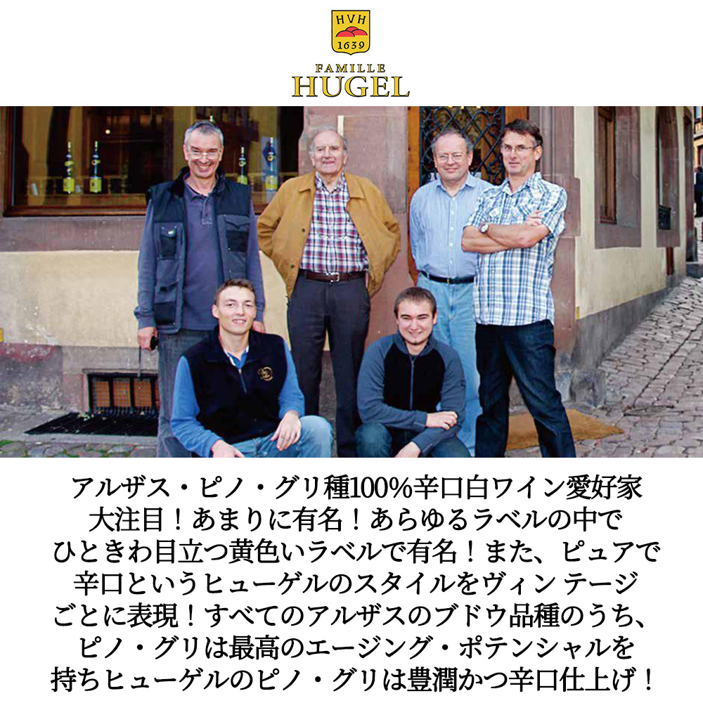 12世代、360年以上にわたり「ワインの品質は100%ブドウそのものによる」という黄金律を守り続けるアルザスの名門中の名門!エレガントで洗練された新しいラベルがこのクラシック・シリーズを彩り、ピュアで辛口というヒューゲルのスタイルをヴィンテージごとに表現!一点の妥協もない辛口のワインに仕上げているヒューゲル社のクラシックシリーズ(すべて最辛口)のピノ・グリ100%!