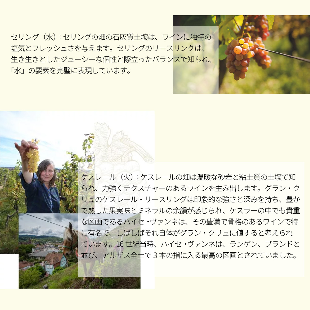 ベルツブルンネンの区画及びグラン・クリュ特級のケスラー、特級キッテルレ、特級スピーゲルのゲヴェルツトラミネールを使用と言う究極アルザス・ゲヴェルツトラミネール!