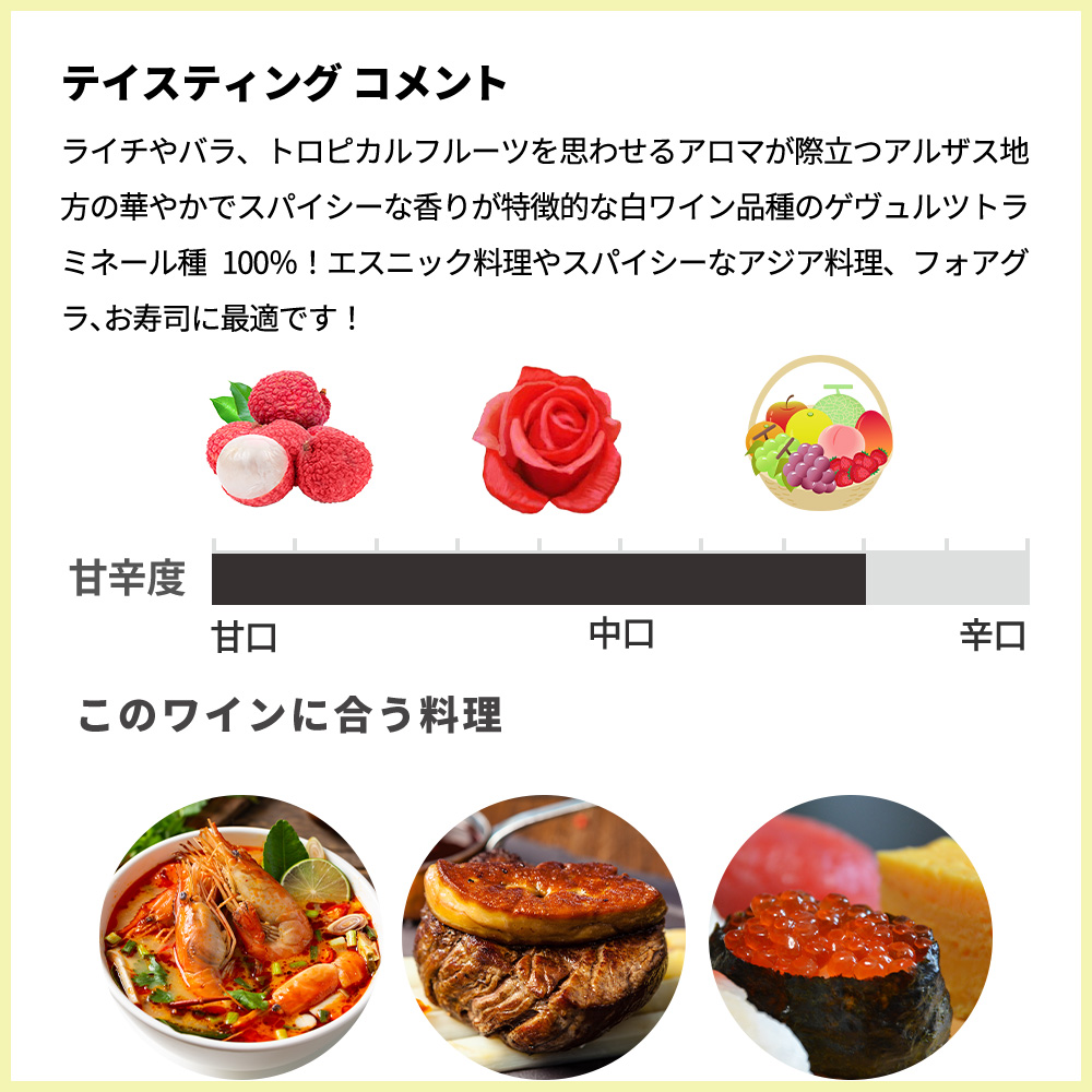 ■ぶどう品種:アルザス・ゲヴュルツトラミネール種100%