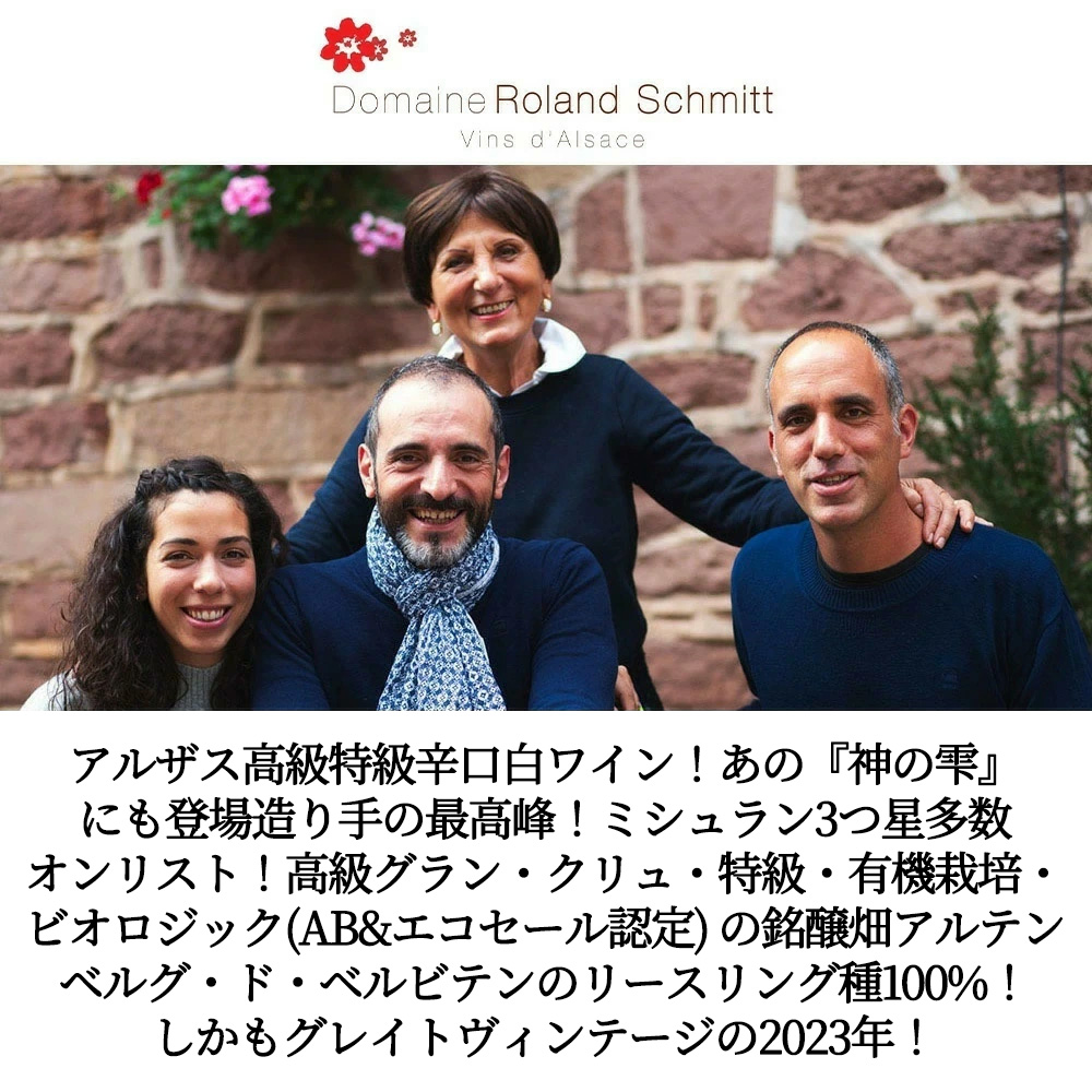 造り手はストラスブールの西、ベルグビエテン村に17世紀から続くアルザス最北部のグラン・クリュのひとつ「アルテンベルグ・ド・ベルグビエテン」の盟主として知られるドメーヌ・ローラン・シュミット!ワインのタイプはアルザスの中でもとりわけ繊細で、薫り高いことで知られ、料理を引き立てるタイプとして有名!