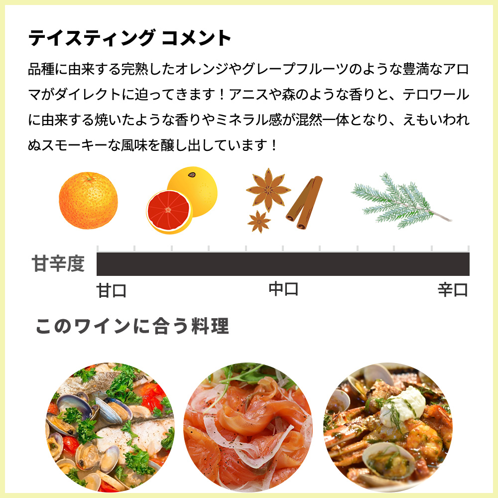 品種に由来する完熟したオレンジやグレープフルーツのような豊満なアロマがダイレクトに迫ってきます!アニスや森のような香りと、テロワールに由来する焼いたような香りやミネラル感が混然一体となり、えもいわれぬスモーキーな風味を醸し出しています!また、石膏土壌に由来するたっぷりとしたミネラルは塩辛く感じるほどで、これが、じっくりと手をかけた魚介料理との相性を抜群にしてくれる究極やや辛口グラン・クリュ・リースリング!