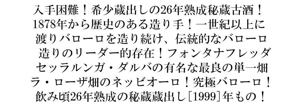 バローロオールドヴィンテージ愛好家垂涎の25年目を迎える究極バローロ!希少な蔵出し作品!!
