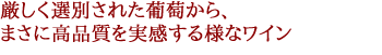 ワインはその土地を忠実に表現します。どれだけあなたが愛したか、どれだけ手をかけたかによって、素晴しい結果と満足を私たちに与えてくれるものです。ワインは最大の感情表現だと思います。その色は美しく輝き、芳香は力強く、味わいで人を魅了し、そして説得力を持って女性に囁きます。美しさは永遠に生きています。