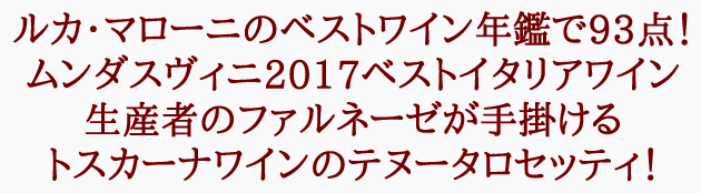 ファルネーゼ グループがアブルッツォ、シチリア、プーリア、カンパーニャ、バジリカータに続いて、遂にトスカーナワインを手掛けました。以前からファルネーゼと協力関係にあったロセッティ社(Rossetti社)とのパートナーシップによって実現した高コストパフォーマンスのトスカーナワインです。個人の栽培農家と契約し、葡萄を購入というファルネーゼと同様の方法で高品質な葡萄を手に入れます。