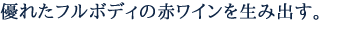 ボディはしっかりしていますが、活き活きとした酸によりフレッシュさが感じられる余韻の長いワインです。アロマティックで芳醇で、かつ繊細な味わいが特徴。