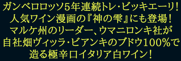 1955年創業。いち早く近代的な畑の管理法やブドウの栽培法、新しいワインの醸造法を取り入れた、マルケ州のリーダー的な存在。2002年から新たに実力派醸造専門家ジュゼッペ・カヴィオラ氏をコンサルタントに迎え、優れたワインを多数生み出しています。コストパフォーマンスの良さに加え、ワインを気軽に楽しんで欲しいという同社の熱い思いが込められています。※ウマニ・ロンキ社はアブルッツォ州にもブドウ畑と醸造所を所有しています。