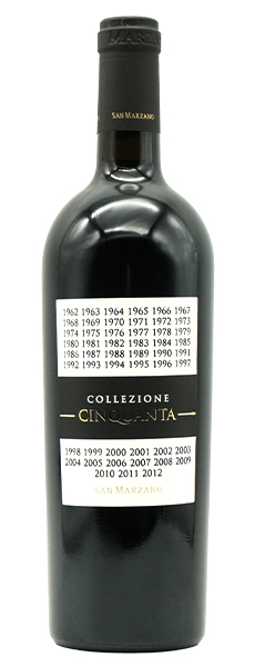 カンティーネ・サン・マルツァーノ創立50周年を記念して造られた赤ワイン。プリミティーヴォ50%、ネグロアマーロ50%。ステンレス・タンク、主醗酵後、ステンレス・タンクにてマロラクティック醗酵。オーク樽12ヶ月熟成(仏産225L)ステンレス・タンク12ヶ月、瓶熟6ヶ月以上。