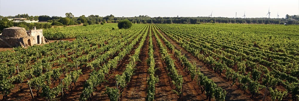サン・マルツァーノはプーリアの南側に位置しています。南プーリアの土壌は赤土で石灰質の豊富な土壌。土は深さ約50cm程度しかなく、その下はすぐ石灰石になっています。そのため農作物の根はすぐに石の部分まで届き、鉄分で実が赤くなるといわれる程。ブドウの生育に非常に適した土壌といえます。さらに、非常に温暖な気候ながら海へはサン・マルツァーノの畑から車で5分程度でたどり着くほど近いため、朝夕には潮風で畑が冷やされ、果実味に溢れながらもきちんと酸味を保ったワインづくりを可能にしています。