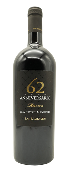 アニヴェルサーリオ セッサンタドゥエ リゼルヴァ 2017年 カンティーネ・サン・マルツァーノ サレントのブドウ栽培の更なる可能性を伝える目的で、1962年に19軒のブドウ生産者が「カンティーネ・サン・マルツァーノ」を設立しました。それから長い年月を経てなお、古いブドウの木は貴重な品質高い実をつけています。我々はこれまでの経験を活かしつつ革新を行い、その品質の高いブドウを最善なワインに醸す努力を重ねてきました。その結果、力強くエレガントで、長期熟成可能なプリミティーヴォが生まれました。 ターラント県のサン・マルツァーノとサーヴァで選ばれた古いブドウの木。微細質の赤土、石灰質で岩石がまばらな下層で酸化鉄が豊富に含まれる 。 樹齢60年以上の木。(1ヘクタールあたり5000本)。熟したブドウを手摘み。マセレーションはブドウ畑内の土着酵母を使用して、質量の80%を18日間、20%を25日間行われます。発酵は24?26℃に管理された環境で行われます。フレンチオークとアメリカンオーク樽で18か月間熟成。 非常に深くエレガントなルビーレッド。プルーンやさくらんぼのジャムのフルーティな香りに、タバコや軽いスパイスの風味が複雑に入り組んだ広がりのある香り。柔らかみがあり、上質なタンニンが豊富なフルボディワイン。カカオ、コーヒー、バニラを思わせる後味が特徴です。どっしりとしたパスタ類、赤身の肉やジビエと。