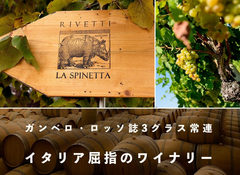 ラ・スピネッタ社のワイン造りは、リヴェッテイ3兄弟が、父(愛称ピン)から譲り受けたブドウ畑で、イタリアで初めて単一畑のモスカート・ダスティをリリースしたことが始まりです。その後、バルベーラ種やネッビオーロ種の畑を次々に購入し、成功を収めていきました。また、2001年にはトスカーナ州に畑を購入し、ワイン造りを始めました。醸造所は、創業の地、モスカート種のブドウ畑があるカスタニョーレ・ランツェ以外にバローロ地区グリンザーネ・カヴール、トスカーナ州ピサ近郊の3ヶ所に所有しています。