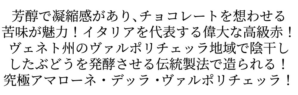 陰干しをしたブドウから造られるがヴェネト州を代表する高級辛口赤ワイン「アマローネ」!