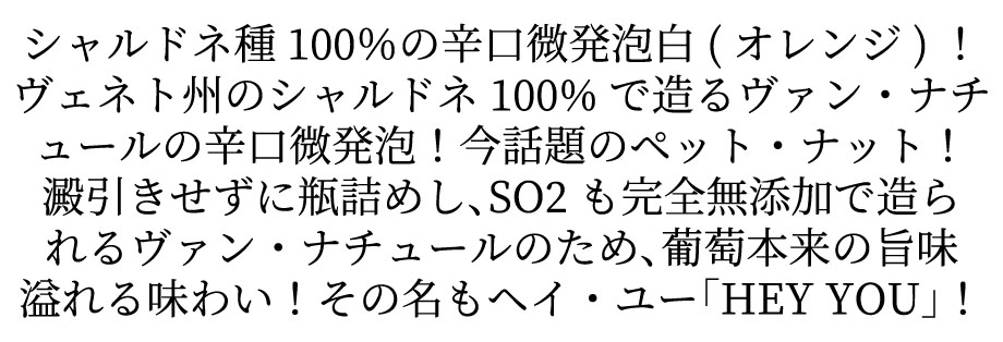 ヘイ ユー フリッツァンテ ビアンコ ペット ナット 2022 オールド ボーイ ワイン IGTヴェネト 自然派 ペティアン ナチュレル 微発泡