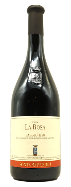 【豪華木箱入】バローロ ヴィーニャ ラ ローザ 1998 究極限定蔵出し秘蔵古酒 フォンタナフレッダ社元詰 DOCGバロ 正規代理店輸入品 26年熟成 ■ぶどう品種:ネッビオーロ ■発酵・熟成:フランス アリエ産のオーク樽(新樽50%)で1年/ 2000~3000Lの木樽に移し1年、ボトリングして1年の、計3年熟成 ■樹齢:33~34年 ■地形:海抜250~310mの南南西に開けた銘醸畑 計3年熟成!その後しかもフォンタナフレッダ社のセラーでの素晴らしい環境の下で24年以上の歳月をすごした究極フルボディ赤ワイン!飲み頃26年熟成バックヴィンテージ! エスプレッソガイド誌では、「“ヴィーニャ・ラ・ローザ”はここ数年、このワイナリーで造られた最高のバローロだ」と大絶賛! マット・クレイマー氏も伝統堅持の一派として、ジャコモ・コンテルノと伴に特記し、「ピエモンテ全土を代表するもっとも偉大な至宝のごときワイナリーといっても過言ではない」と注目! ヴェルヴェットのような滑らかさ、エレガントさ、スパイスや乾燥したバラを思わせる密度の濃いブーケを感じさせる究極フルボディ赤ワインが限定で、しかも蔵出しで豪華木箱に入って!限定で少量入荷!