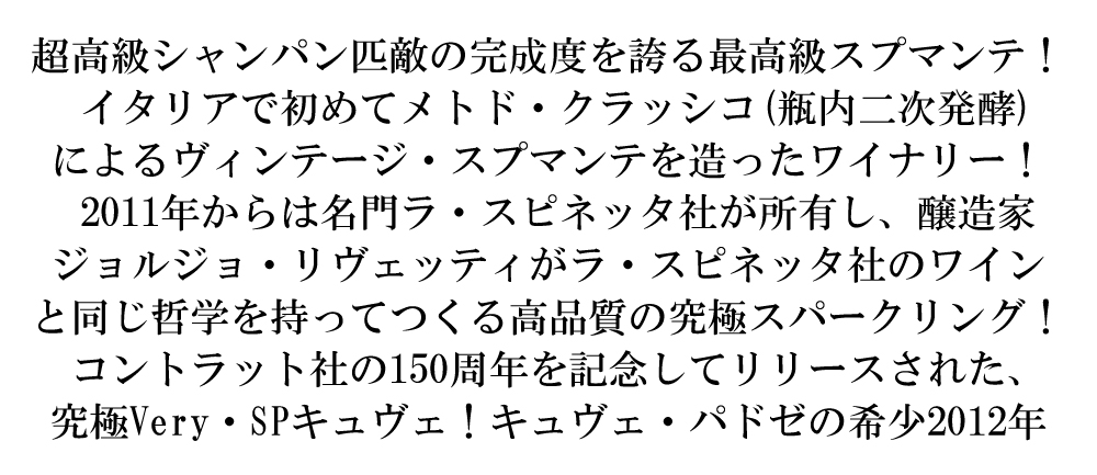 超スペシャル・キュヴェの究極辛口ヴィンテージ特別な高級メトド・クラッシコ・スプマンテが重厚ボトル入りで正規代理店輸入品で限定で極少量入荷!