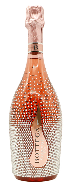 イタリア高級辛口スプマンテ・ロゼ愛好家大注目!こだわりイタリア高級辛口・ロゼ・スパークリング愛好家大注目!手摘み100%、マンゾーニ・モスカート種100%!で造られる3000粒のクリスタルをちりばめた豪華な手作りボトルに入った、ボッテガ・スターダストのロゼ・バージョン!