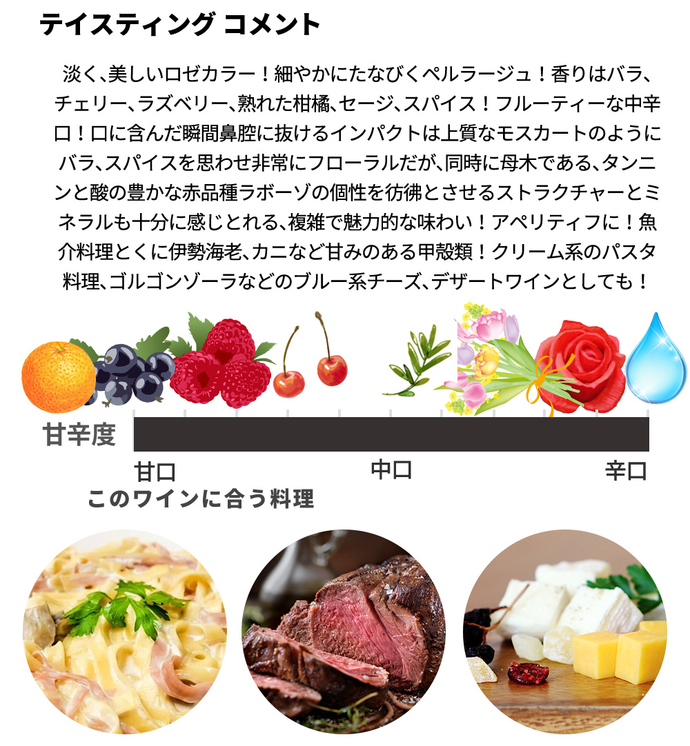 造り手はプロセッコの名産地であるコネリアーノ郊外に位置するボッテガ社!このボッテガ・スターダスト・ロゼは9月に手摘みで収穫されたぶどうを破砕後、短時間のマセラシオン(果皮浸漬)を施し、ロゼカラーを引き出す!