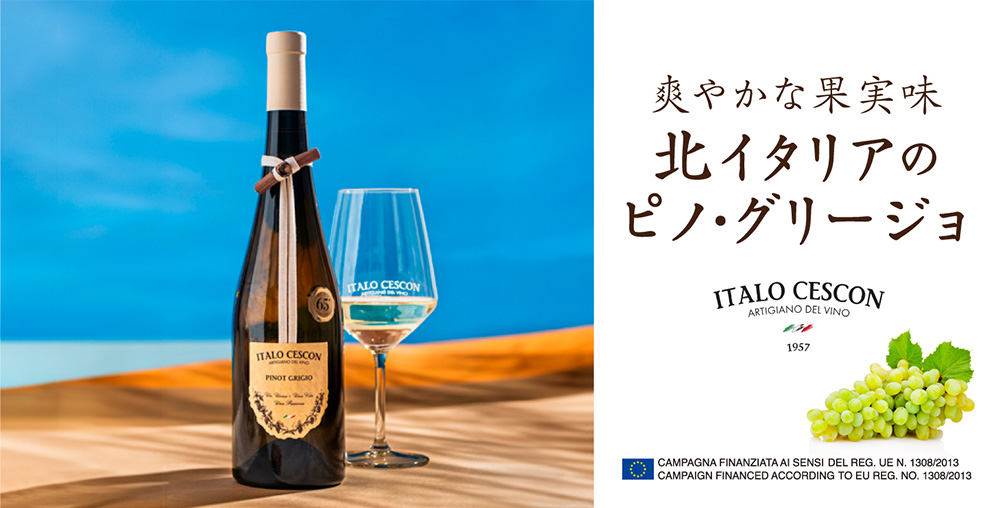 イタリア辛口白ワイン愛好家大注目!ピノ・グリージョファン大注目!2008年11月のデカンタ誌で「ベストヴァリュー白ワイン」に選出された実績もあるお勧めのピノ・グリージョ!ワインボトルのネックに手作業で結びつけられた小さなブドウの枝であまりに有名なカンティーナ「イタロ・チェスコン」!