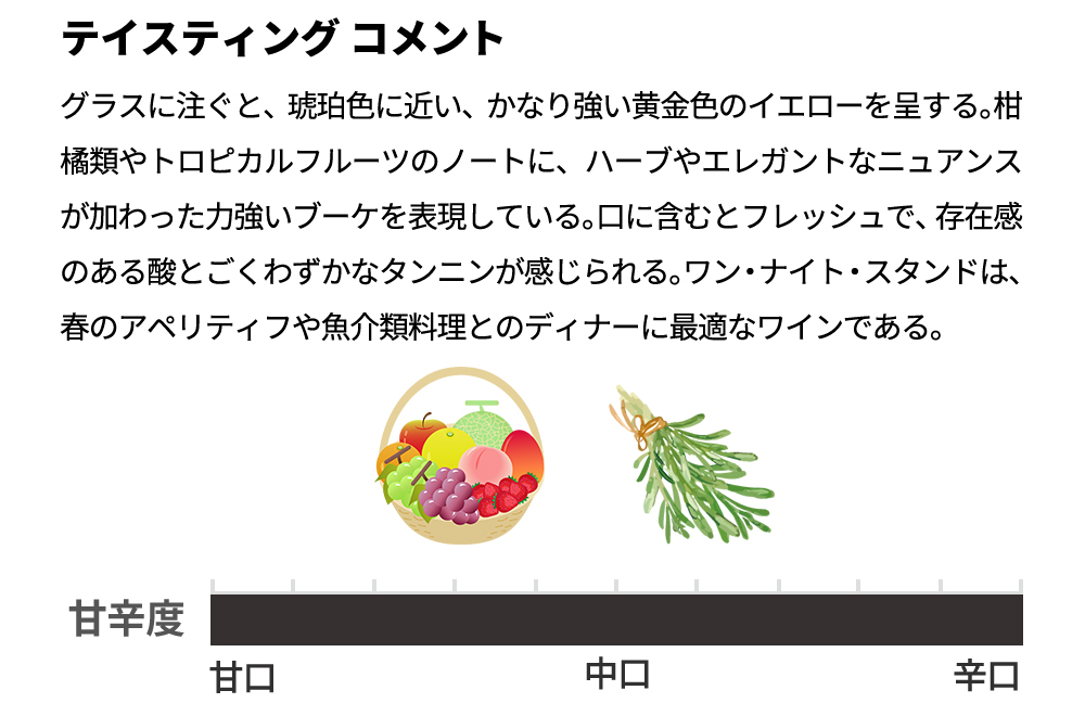 常温で飲まれることも多いオレンジワインですが、このワン・ナイト・スタンドは少し冷やしぎみの10度前後が一番お楽しみ頂けると思います!
