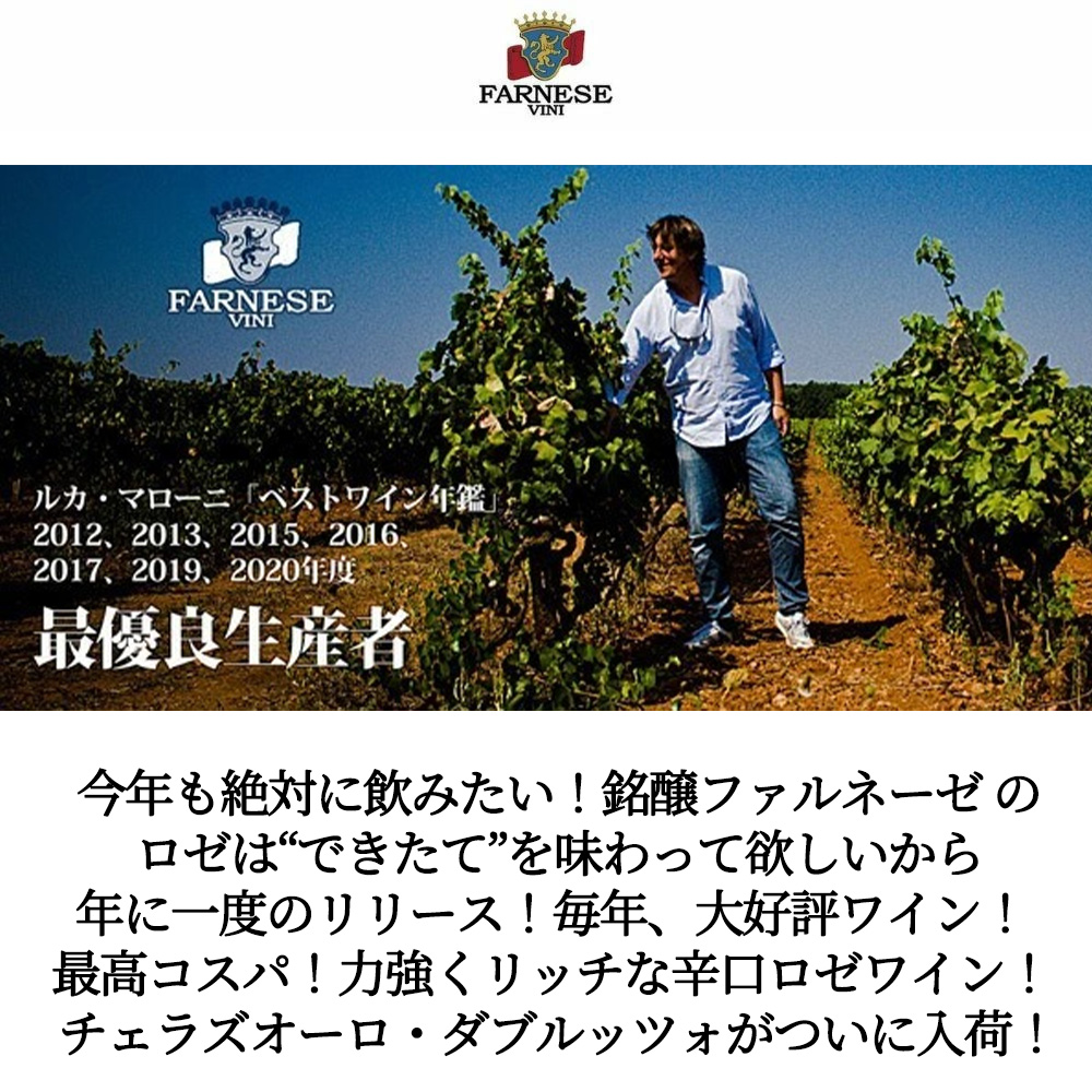 このワインは、イタリアのアブルッツォ地方で生産される辛口ロゼワインである。チェラズオーロ・ダブルッツォDOCの規格に認められた高級ワインであり、モンテプルチアーノ・ダブルッツォから造られている。濃いラズベリー色を持ち、小さな赤い果実を思わせる強くて持続性のある繊細でフルーティな香りが特徴だ。