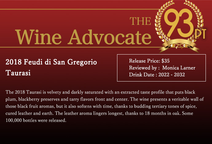 【「フェウディ・ディ・サン・グレゴリオ」は、イタリアはカンパーニャ州にて、土着品種のアリアーニコを大化けさせた「タウラージ」「セルピコ」などを世に送り出し、ガンベロ・ロッソ等で高い評価を獲得している有名なカンティーナです。カンパーニア州の旧アッピア街道沿い一体にブドウ栽培を奨励し、ワイン造りの伝統を築いた6世紀末の教皇グレゴリオ1世に敬意を表し、“フェウディ・ディ・サン・グレゴリオ(聖グレゴリオの領地)”を社名に冠しています。【土壌と地元のブドウ品種にこだわって、最新テクノロジーと農学研究を駆使し、類まれなる高品質ワインを生み出しています。その業績は従来のカンパーニア・ワインのイメージを刷新するだけでなく、イタリアワインの新潮流となっています。土着のブドウに深い愛情を寄せ、イタリアのみならず世界中から熱い視線を浴び続けている造り手として、その一挙手一投足からは目が離せません。【アヴェッリーノ県“イルピニア”地区を中心に自社畑を所有しているフェウディ・ディ・サン・グレゴリオ社は、山岳・丘陵地帯、平地、河川などが入り組んだ非常に複雑な環境です。風通しがよく、日照量が多い独特の微気候(ミクロクリマ)や、古くからの堆積層とヴェスーヴィオ火山灰で構成される火山灰、凝灰岩、粘土、砂などを多く含む肥沃な土壌を持ちます。また気象学に基づき降雨量や風、ブドウの葉の湿度まで詳細な情報をデータ化するための自動監視システムミラノ大学との土壌・ブドウの共同研究 (テンドーネ式からグイヨー式、コルドーネ式の採用)で、ゆっくりと完熟し、ミネラル分豊富で、糖度、酸のバランスがとれた、優秀なブドウを育てる事に成功しています。更にフェウディ・ディ・サングレゴリオ社はバジリカータとカンパーニアに2つのミシュラン1つ星レストランを所有し、食文化の啓蒙にも努めています。【マット・クレイマー氏は著書「Making Sense of Italian Wine」の中で「当代カンパーニアの雄ともいうべき生産者、フェウディ・ディ・サン・グレゴリオは、ほとんど何を作らせても絶妙なタッチを見せるかのようで、タウラージもその例にもれない。18ヵ月をオーク小樽で過ごすタウラージのリゼルヴァ、ピアーノ・ディ・モンテ・ヴェルジーネは、断固たるオーク風味をもつが、深い果実味は重厚そのもので、しかもなお端正さを失わず、ミネラルも感じさせる。現代タウラージの名品のひとつといえる。」とコメント。