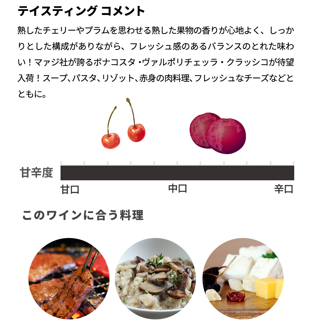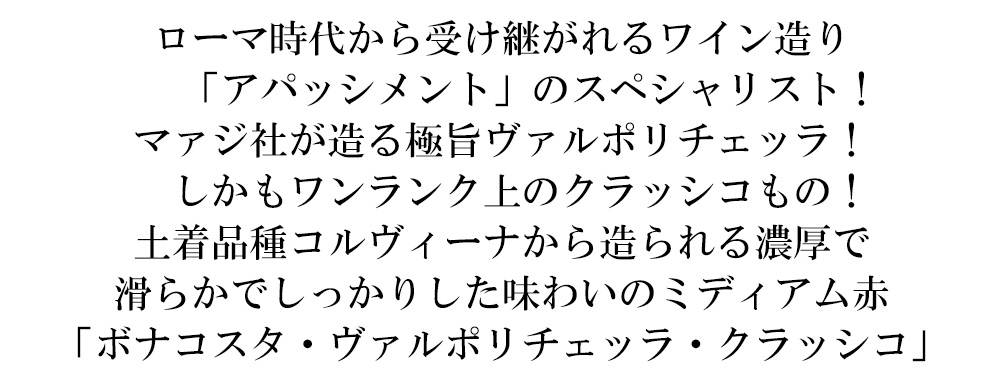 ガンベロ・ロッソ誌2018年版において「ワイナリー・オブ・ザ・イヤー」を受賞(これはイタリア全土2485あるワイナリーからたったひとつ選ばれる大変名誉ある賞)!最高のクオリティを持ち、ヴァルポリチェッラとアマローネの名を世界的に著名なものとしたことと、50年間に渡る功績を認められ満を持しての受賞となったマァジ社!