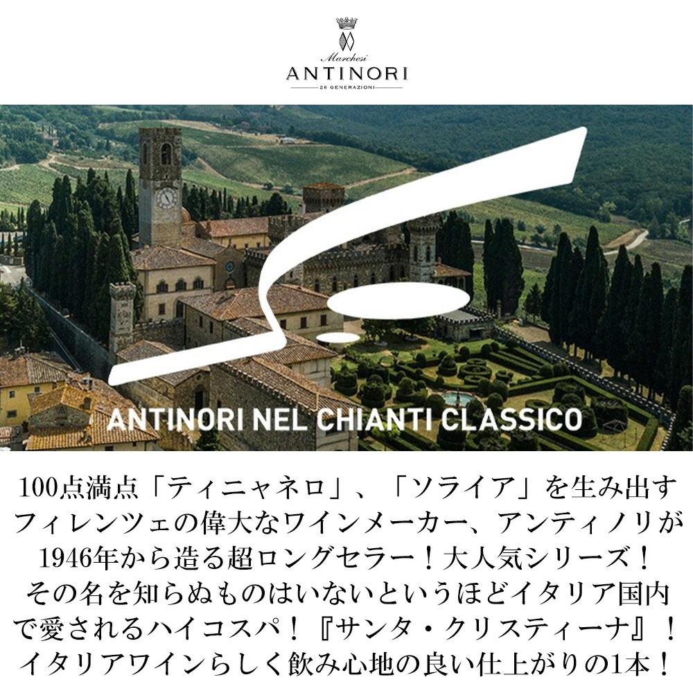 アンティノリはトスカーナ州に始まり、北のピエモンテ州から南はシチリア州に渡り、イタリア全土に10以上のワイナリーを所有!イタリア各地において、「その土地のスペシャリスト」とも言うべき、土地の個性をしっかりと表現をした素晴らしいワインを造り出しています!ずばり名門アンティノリの品質を気軽に楽しむことが出来る大人気シリーズ「サンタ・クリスティーナ」(その名を知らぬものはいないというほどイタリア国内で愛されるワイン)!