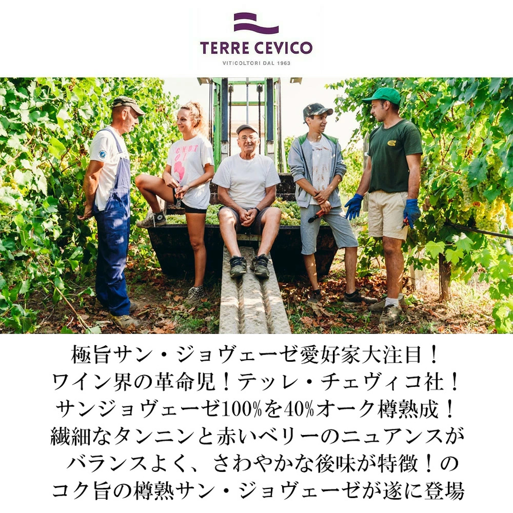 イタリアで最もポピュラーなブドウ品種のひとつ、サンジョヴェーゼ100%を手摘みで収穫、除梗後ブドウは破砕せず丸ごと残すことで果皮へのダメージを減らし、色の抽出を最適化する!25℃で7日間発酵、発酵初期の段階では頻繁にルモンタージュすることでアロマとタンニンを穏やかに抽出!澱引き後マロラクティック発酵、ワインの40%はオーク樽で6ヶ月熟成!