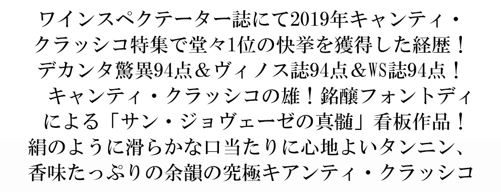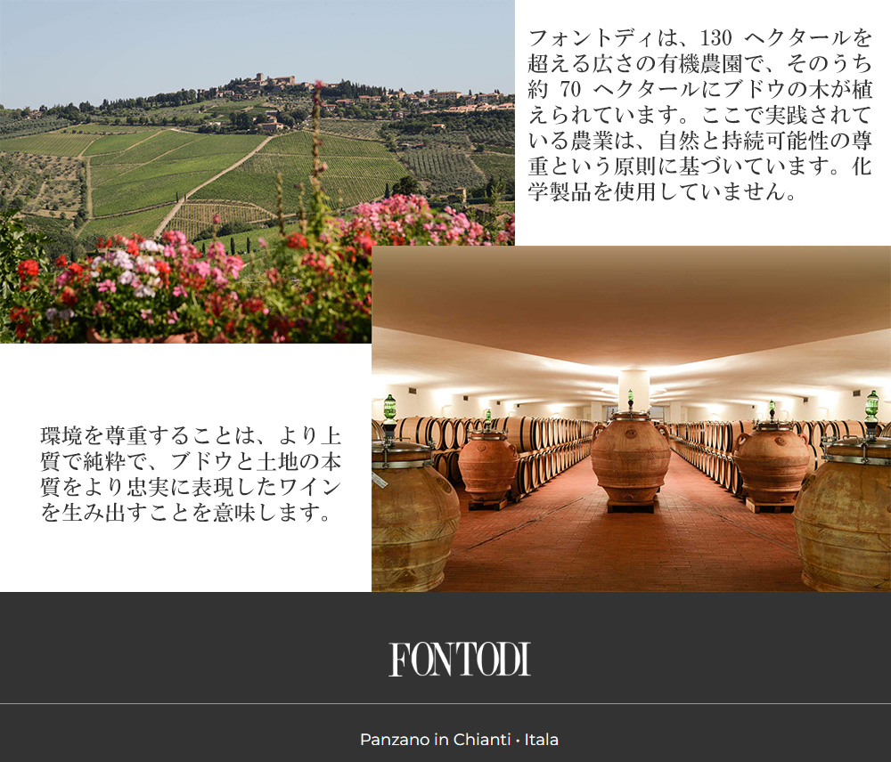 ワイン評論家のヒュー・ジョンソン氏のポケットワインブックで「本当に良いキアンティ・クラッシコ」の産出業者の上位12位にランキングされ、ロバート・パーカー氏は満点★★★★★5つ星生産者に挙げる名門中の名門フォントディ(マネッティ家)!マネッティ家は、昔からサンジョヴェーゼだけで美味しいキアンティがつくれるはずと考え、サン・ジョヴェーゼ100%の卓越したキアンティを生産していましたが、昔はこれが法律で認められておらず、製法を秘密にしていました!