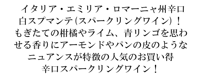 イタリア・エミリア・ロマーニャ州辛口白スプマンテ(スパークリング)愛好家大注目!人気辛口スパークリングワイン!