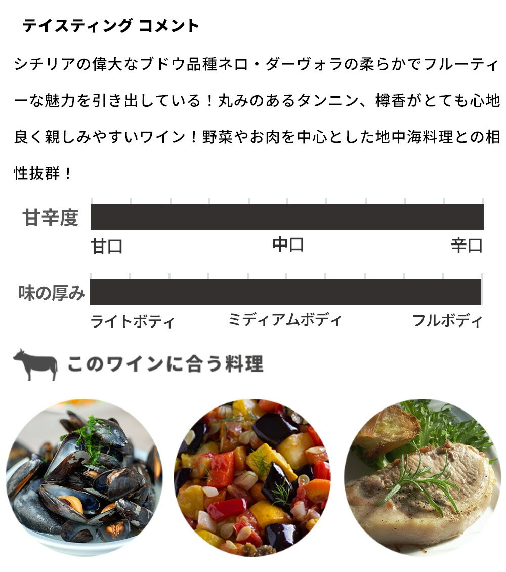アランチョ湖の周りに位置する古いブドウ畑のブドウで造られるこのワインは、シチリアの偉大なブドウ品種ネロ・ダーヴォラの柔らかでフルーティーな魅力を引き出している!丸みのあるタンニン、樽香がとても心地良く親しみやすいワイン!野菜やお肉を中心とした地中海料理との相性抜群!レストラン様をはじめ愛好家から絶大な人気を誇る極旨プラムバーゴが正規代理店輸入品で待望入荷!