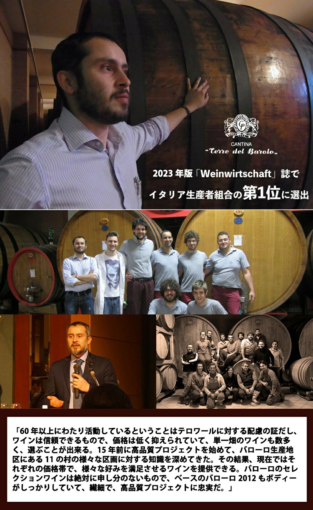 輝きのあるルビーレッド。赤い果実のアロマにペッパーやクローヴなどのスパイスの要素が混ざり合っています。口に含むと心地よい酸が感じられ、洗練されてエレガントな味わいで持続性があります。小さな赤い果実やスパイスの香るフレッシュな余韻があります。しっかりとした骨格があり、持続性があります。長期熟成のポテンシャルを持ったバローロです。