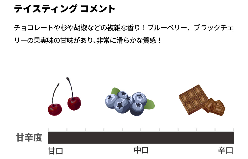 チョコレートや杉や胡椒などの複雑な香り!ブルーベリー、ブラックチェリーの果実味の甘味があり、非常に滑らかな質感!がっしりとした骨格だが柔らかく、上品な酸とふくよかな果実味!トゥア・リータのラインナップの中で、トスカーナらしさを最も強く感じさせる特別なワイン!究極ペルラート・デル・ボスコが高評価[2022]年で待望の少量入荷!