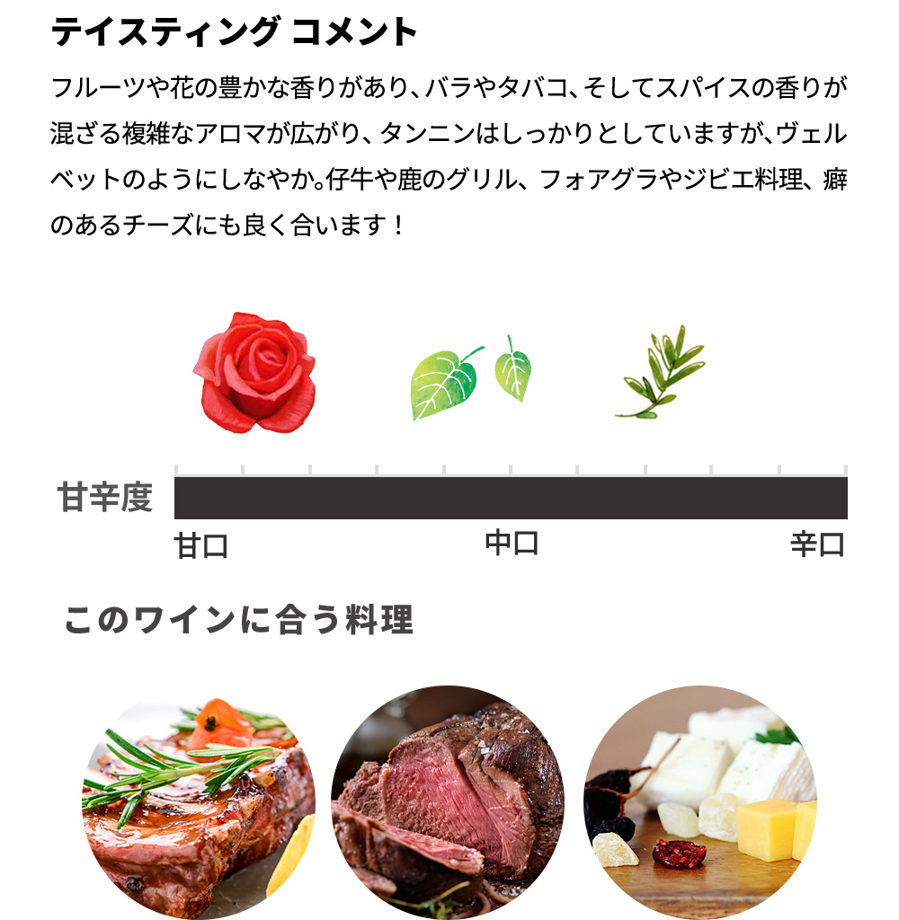 しかも素晴らしいグレイトヴィンテージ2017年(WAで93点)でフルーツや花の豊かな香りがあり、バラやタバコ、そしてスパイスの香りが混ざる複雑なアロマが広がり、タンニンはしっかりとしていますが、ヴェルベットのようにしなやかな[2017]年もの。