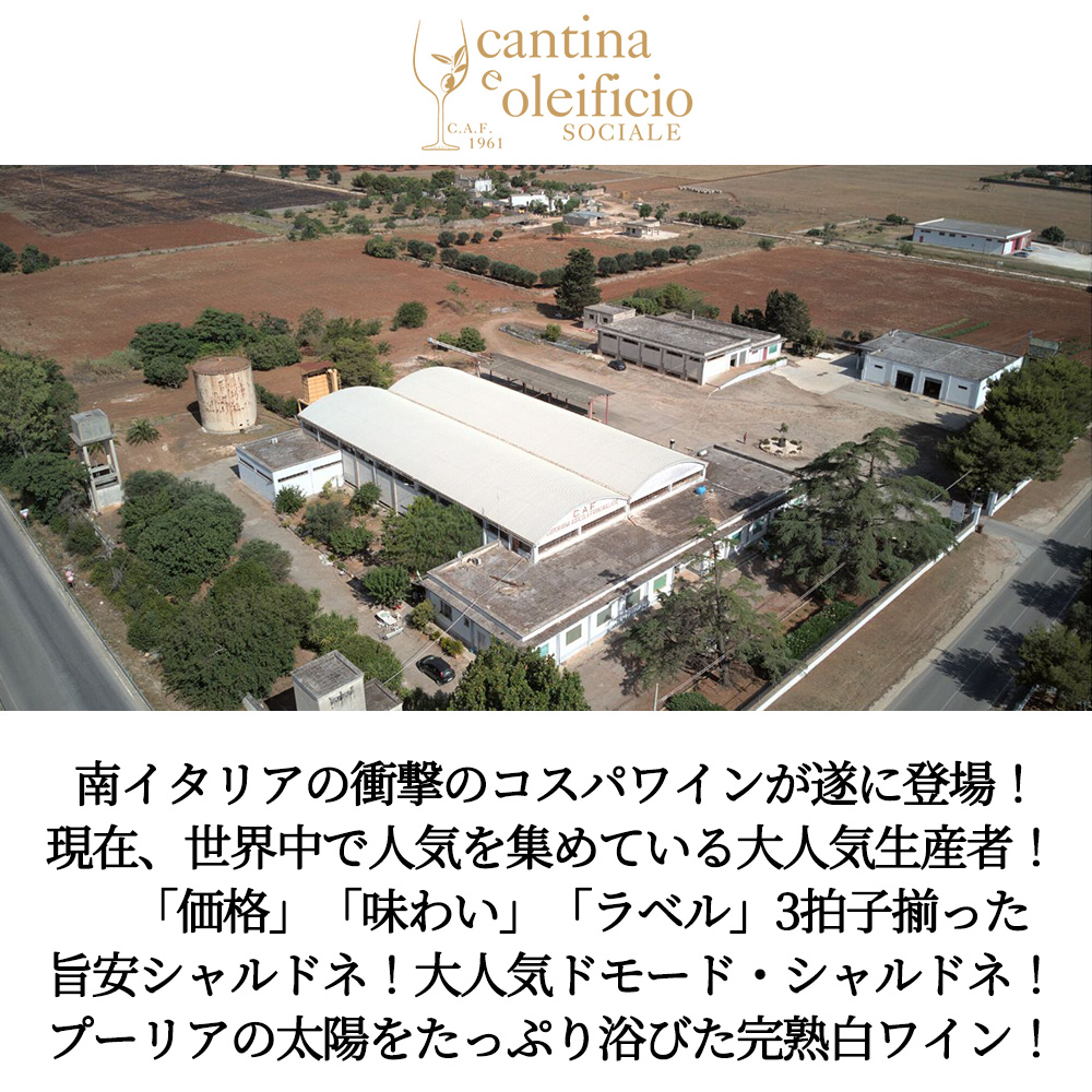 南イタリアの衝撃のコスト・パフォーマンスワインが遂に登場!「価格」「味わい」「ラベル」3拍子揃った旨安シャルドネ!